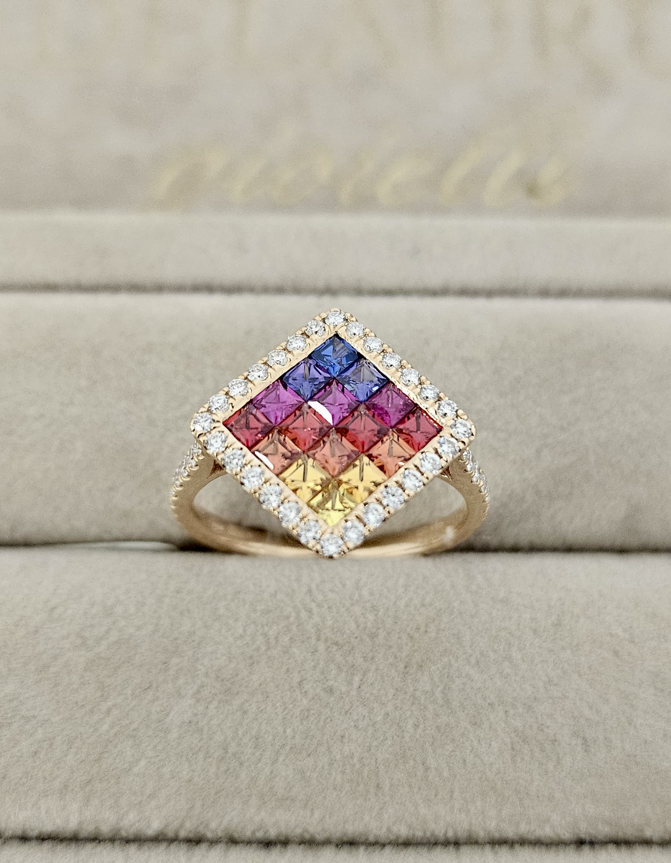 Anello Brillanti e Zaffiri Multicolor oro rosa