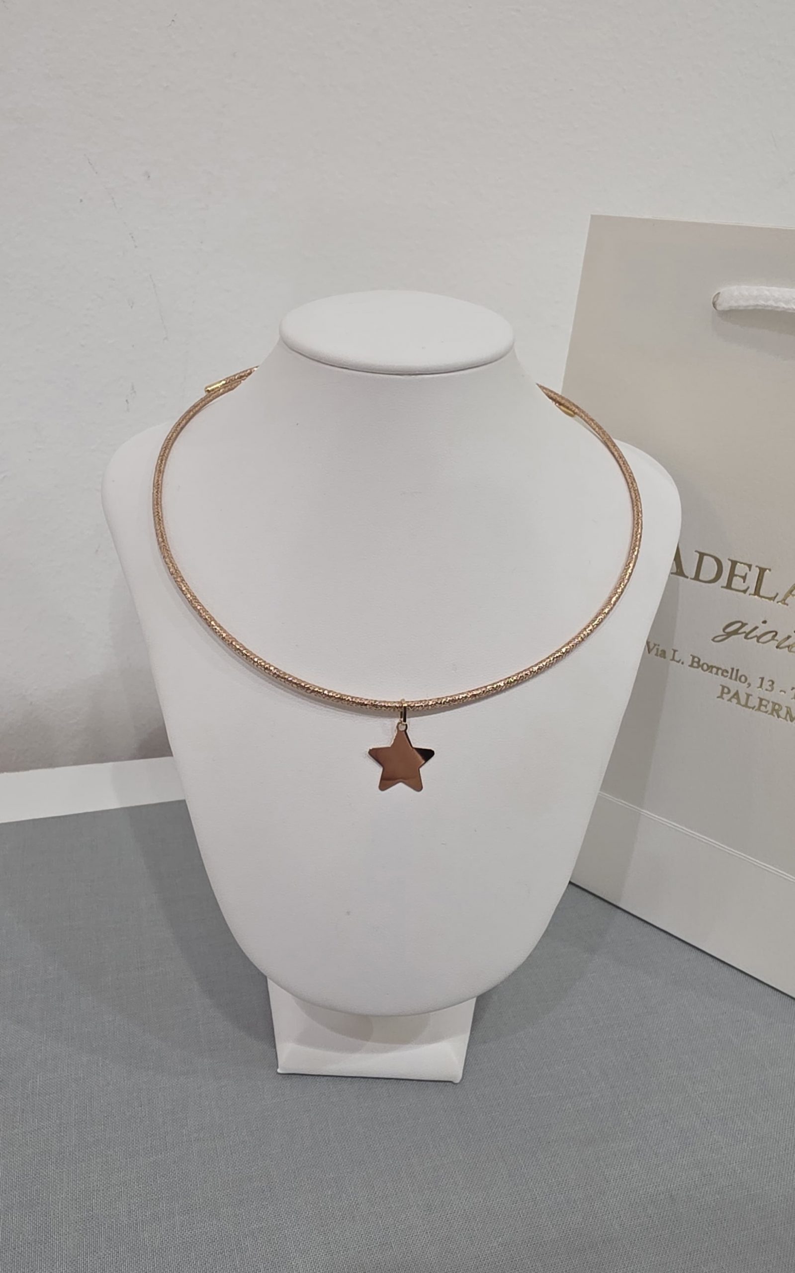 Collana cordoncino con pendente in oro rosa 18kt