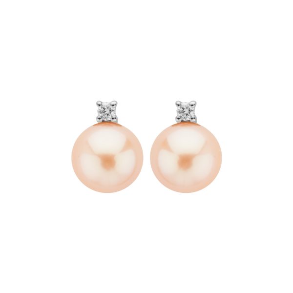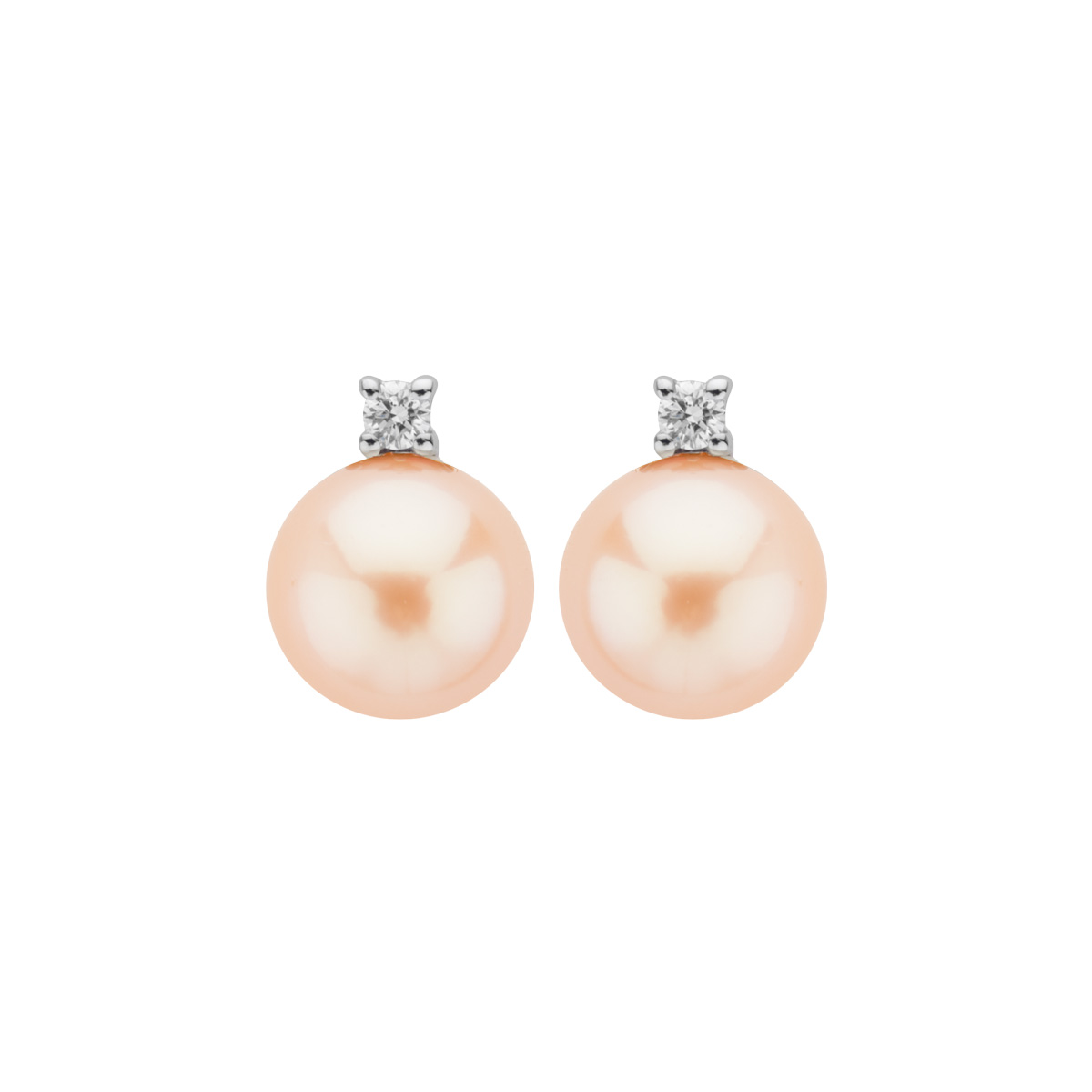 Orecchini in oro 750‰ (18kt) con chiusura chiodo a pressione con Perle Naturali coltivate in acqua dolce con brillanti.